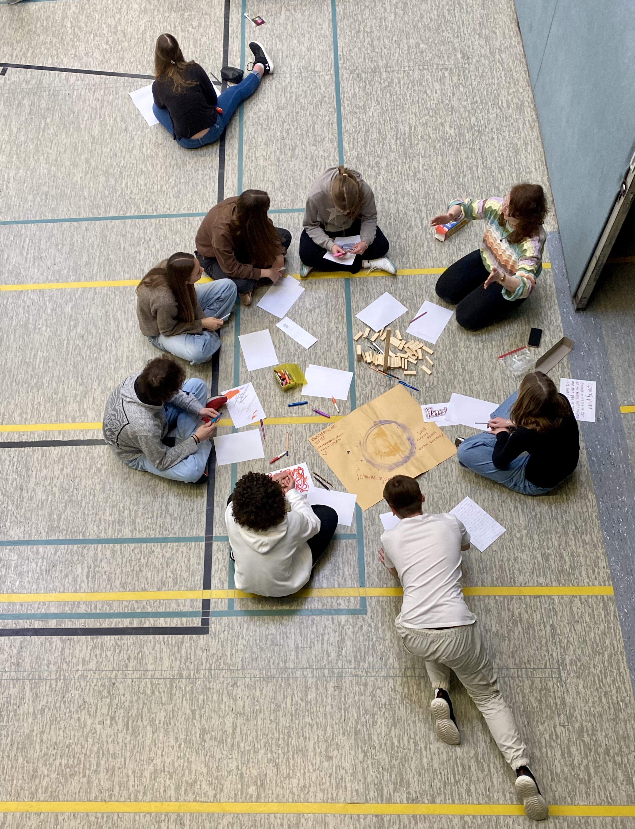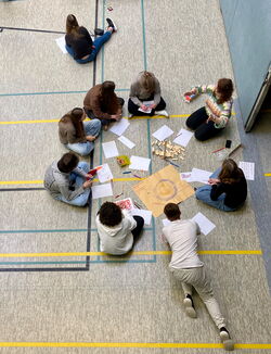 In den weiteren Wochen haben sich die Schüler:innen der Q1, der Internationalen Förderklasse und der Klasse 9c gemeinsam mit Schüler:innen der Gesamtschule Berger Feld in verschiedenen Workshops auf unterschiedliche Weise dem Themenkomplex „Fußball, Sport, Kultur und Träume“ genähert und ihre Träume erforscht. In diesen Trainingscamps haben sie sich gemeinsam mit Künstler:innen und städtischen und freien Akteuren wie dem Musiktheater im Revier, dem Kinder- und Jugendtheater Consol, der Kunstschule, der städtischen Musikschule und weiteren Schulen und Jugendeinrichtungen auf das Turnier vorbereitet. Gespielt wird mit künstlerischen Mitteln: Musik, Literatur, Tanz, Film, Fotografie, bildende Kunst und Theater. Im Mai tragen unsere Schüler:innen in Workshops im „Volumen“ ein kreatives Turnier aus. Mit künstlerischer Unterstützung arbeiten sie konkret an ihren Träumen und setzen diese auf unterschiedliche Weise in künstlerische Werke um, die in einer virtuellen Ausstellung präsentiert werden. Dazu finden öffentliche Führungen durch das Volumen statt, die unter anderem von Schülerinnen und Schülern der MPG durchgeführt werden.