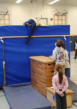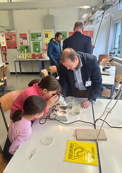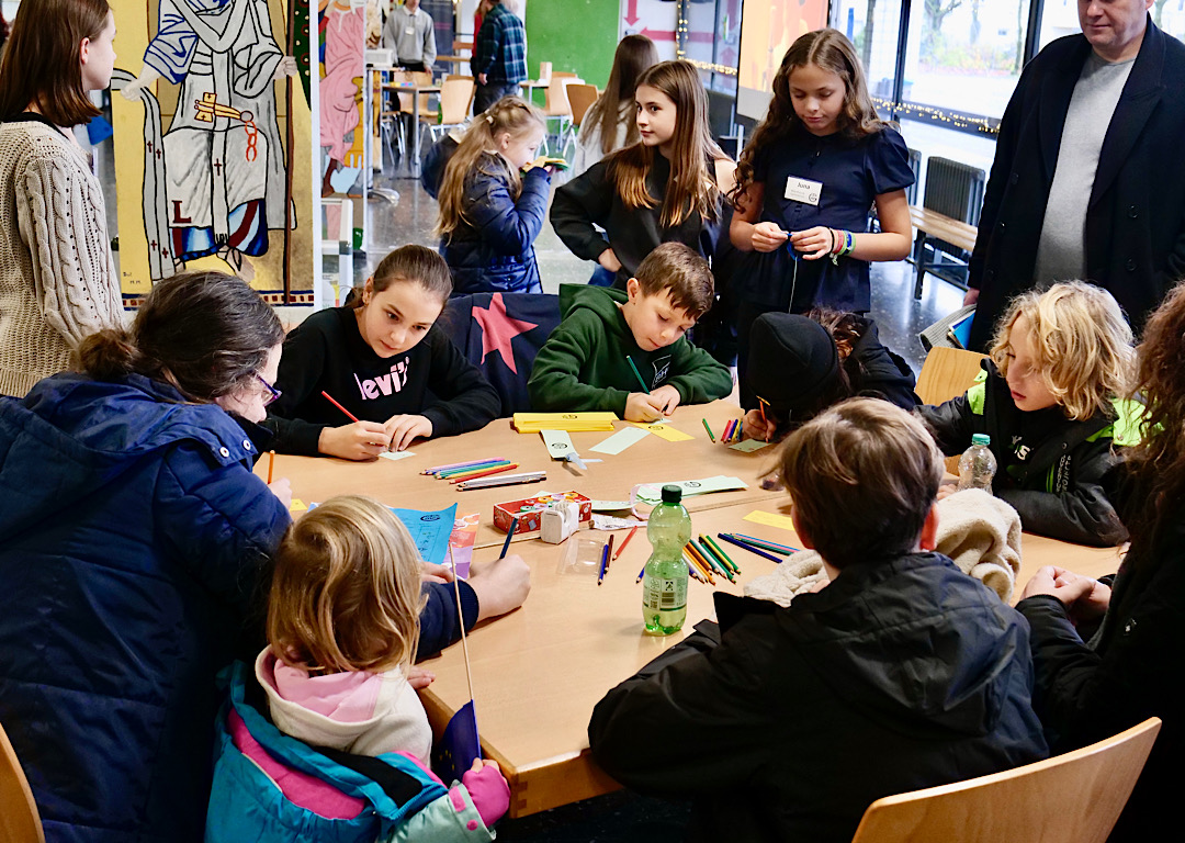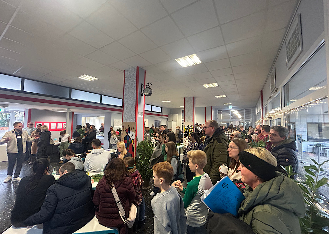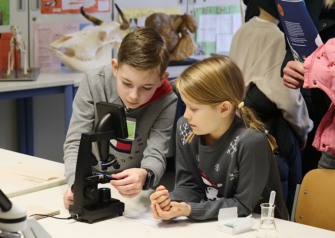 In den Gängen und Fluren der Schule präsentierten sich die einzelnen Fachschaften und AGs. Es gab unter anderem Mikrokospierexperimente in der Biologie, spannende Versuche im Fachraum Physik und chemische Reaktionen zu bestaunen. Das Europaprojekt stellte sich vor, ebenso die Fächer Praktische Philosophie und Psychologie. Bei den Kunstlehrkräften konnten die Kinder herbstliche Grußkarten basteln und bemalen, während in der Sporthalle ein Hindernisparcours, Hockeyspiele und Basketball, unterstützt durch die Sporthelfer, angeboten wurden. Zusätzlich präsentierten sich die Imker-AG, die Brettspiele-AG, die Fächer Darstellendes Spiel und Literatur und die Schülervertretung und das Beratungsteam. Natürlich durften auch die Sprachen Englisch, Französisch, Latein und Italienisch nicht fehlen.