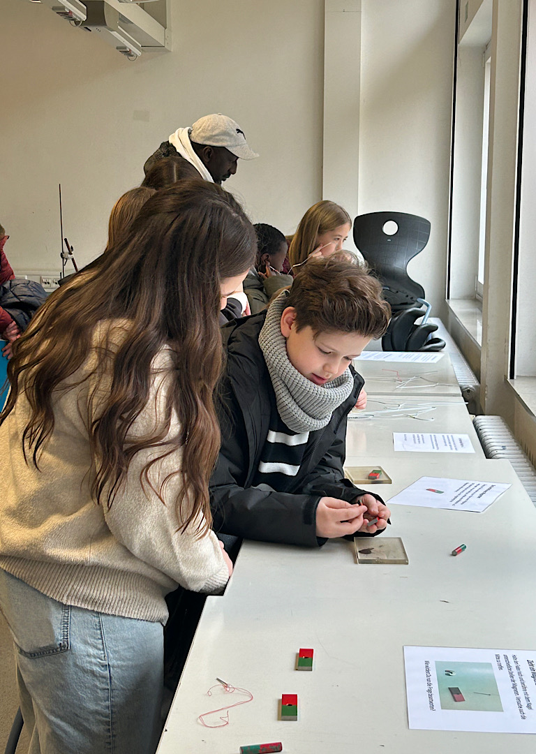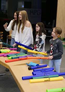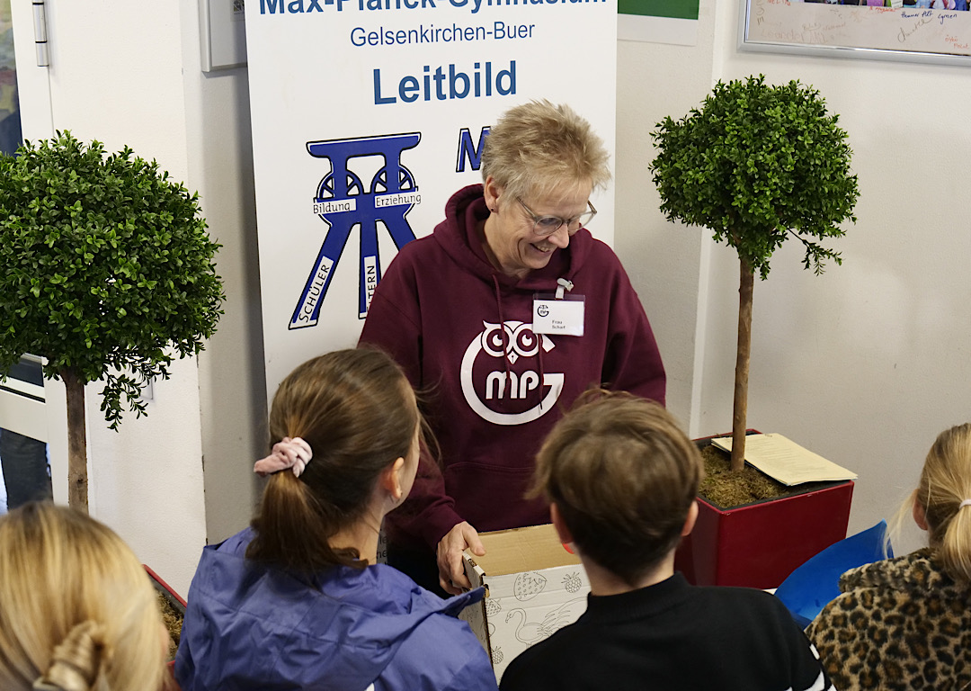 Schon um kurz vor 9 Uhr versammelten sich die ersten neugierigen Kinder mit ihren Eltern vor dem Eingang des Max-Planck-Gymnasiums. Dort wurden sie herzlich von unserem Schulleitungsteam, Frau Scharf und Herrn Feldhaus, und der Erprobungsstufenkoordinatorin Frau Heitkamp empfangen. Ausgestattet mit einer Informationsbroschüre, einem Übersichtsplan und einer Stempelkarte konnten sich die Viertklässlerinnen und Viertklässler auf den Weg machen, um die zahlreichen Mitmachstationen auf dem gesamten Schulgelände zu besuchen und Stempel zu sammeln. Für eine volle Karte gab es am Ende einige schöne Preise. In den Klassenräumen der fünften Klassen konnten sich die Eltern ausführlich in Gesprächen mit Lehrkräften und MPG-Eltern über unsere Schule informieren.