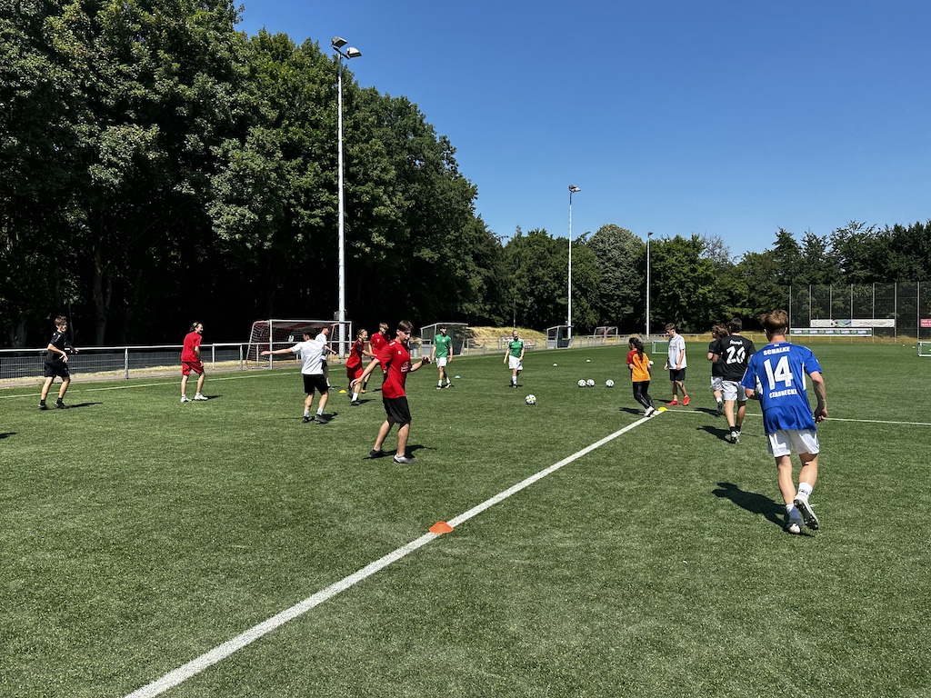 Begeistert zeigten Schülerinnen und Schüler ihr Können am Ball. Unter der sportlichen Leitung von Frau Gärtner und Herrn Fischer trainierten Q1 SuS als Spielertrainer mit und sichteten fleißig.
